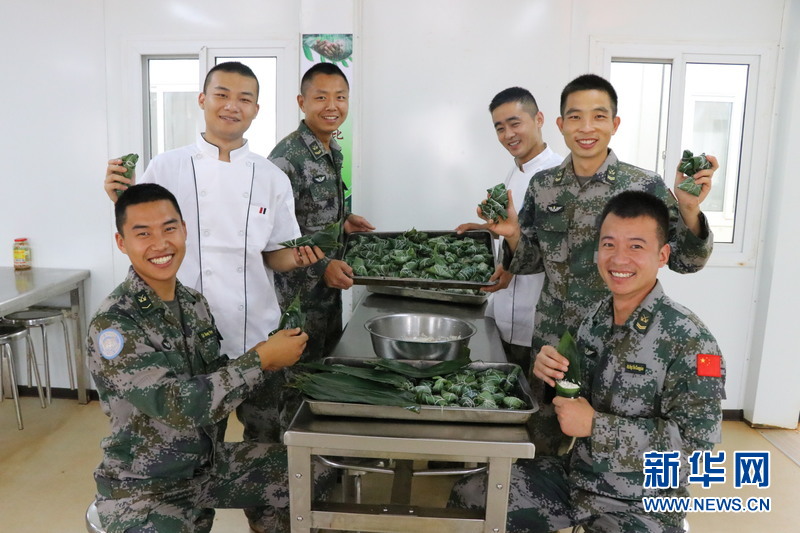 “官兵們?cè)谶h(yuǎn)離祖國(guó)和親人的異國(guó)他鄉(xiāng)執(zhí)行維和任務(wù),在端午節(jié)能夠吃到粽子是官兵們的共同心愿?!贝妒掳嚅L(zhǎng)彭照陽(yáng)一邊包著粽子,一邊欣喜地對(duì)記者說(shuō)。