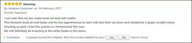 在英國亞馬遜網(wǎng)站《一課一練(英國版)》銷售頁面上,有讀者留言,“有人說我兒子可能無法學(xué)好數(shù)學(xué),今天拿到這本非常具有魔力的數(shù)學(xué)書,孩子一坐下來就馬上完成了5頁,真是奇跡!我現(xiàn)在很高興使用了這個系列數(shù)學(xué)教材,我們一定會買其他幾本。”