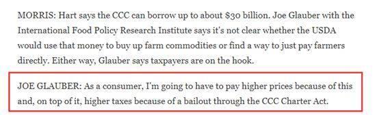 而來自美國(guó)媒體的最新報(bào)道則是,特朗普目前還在考慮給被中國(guó)的反擊傷及最深的美國(guó)農(nóng)業(yè)提供更多財(cái)政補(bǔ)貼,有媒體甚至宣稱特朗普政府可能會(huì)出面收購(gòu)受影響的農(nóng)民和他們的產(chǎn)品,再由政府想辦法賣出去。