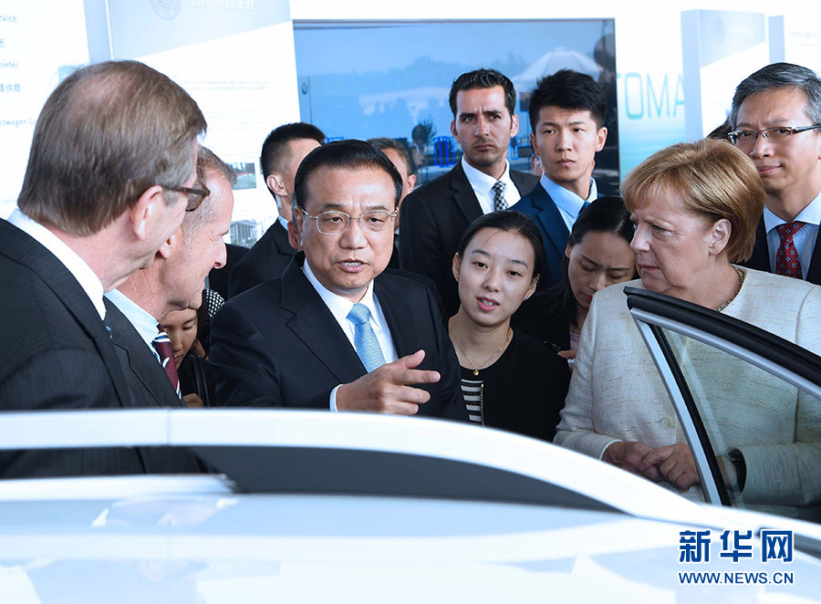 當?shù)貢r間7月10日上午,國務(wù)院總理李克強在柏林與德國總理默克爾共同出席中德自動駕駛汽車展示活動。 新華社記者 饒愛民 攝