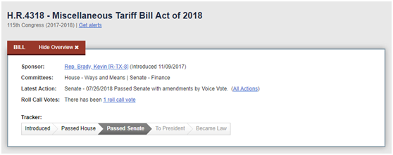 根據(jù)英國路透社的報道,這個法案名叫Miscellaneous Tariff Bill,中文叫“綜合關(guān)稅法案”(也被譯成“關(guān)稅雜項法案”)。