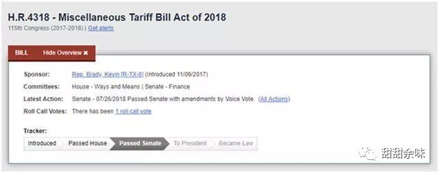 1.從法案本身來看,據(jù)美國國會官網(wǎng)顯示,其最早提交到眾議院的時間是2017年9月11日(對應法案流程的第一步“Introduced”);下一節(jié)點是2018年1月16日,應該也就是眾議院進行討論并通過的日期,此后就是1月17日,從這一天起,處理者由眾議院變成了參議院(對應流程的第二步“Passed House”);再下一個節(jié)點就是2018年7月26日了。