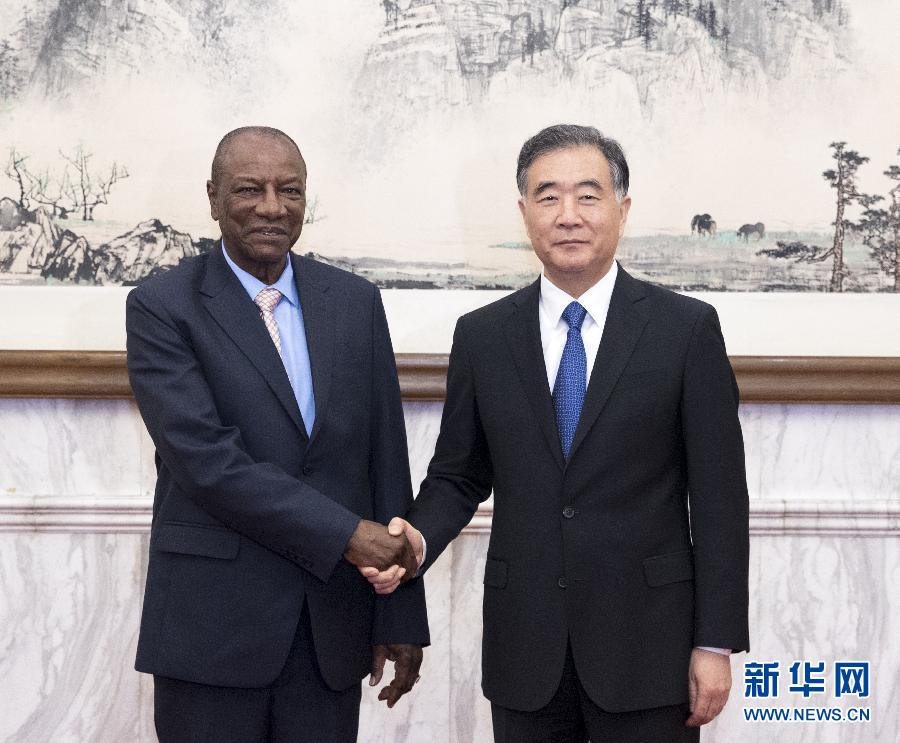 9月1日,全國政協(xié)主席汪洋在北京釣魚臺國賓館會見幾內(nèi)亞總統(tǒng)孔戴。 新華社記者王曄攝