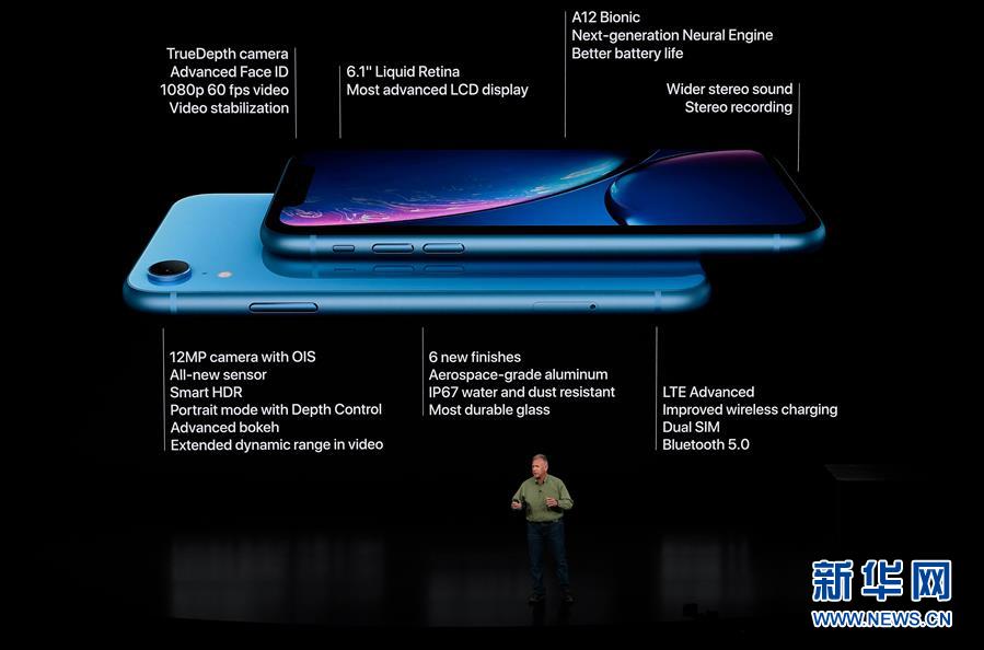 9月12日,在美國加利福尼亞州丘珀蒂諾市舉行的蘋果新品發(fā)布會(huì)上,蘋果公司全球市場(chǎng)營銷高級(jí)副總裁菲利普·席勒介紹新推出的蘋果手機(jī)iPhone XR。新華社發(fā)