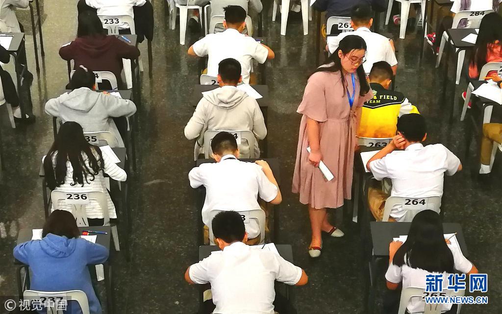 當(dāng)?shù)貢r間2018年9月29日,來自菲律賓首都大馬尼拉地區(qū)十所學(xué)校的1304名考生以及社會考生25名,在菲律賓光啟學(xué)校參加中國漢辦的漢語水平(HSK)考試,分別報考HSK二至六級考試。(圖片來源:視覺中國)