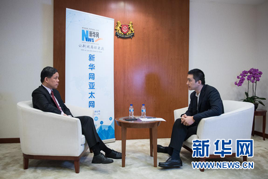 近日,新加坡貿(mào)工部長(zhǎng)陳振聲在新加坡接受新華網(wǎng)專(zhuān)訪。圖為陳振聲(左)與本次訪談主持人、新華網(wǎng)新加坡負(fù)責(zé)人吳磊對(duì)話。新華網(wǎng) 王應(yīng)耀 攝