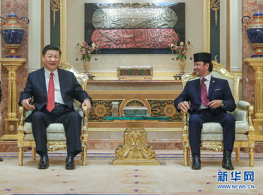 11月19日,國家主席習近平在斯里巴加灣同文萊蘇丹哈桑納爾舉行會談。 新華社記者 鞠鵬 攝