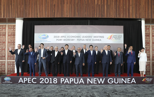2018年11月18日,亞太經(jīng)合組織第二十六次領(lǐng)導(dǎo)人非正式會(huì)議在巴布亞新幾內(nèi)亞莫爾茲比港舉行。國(guó)家主席習(xí)近平出席并發(fā)表題為《把握時(shí)代機(jī)遇 共謀亞太繁榮》的重要講話(huà)。會(huì)議開(kāi)始前,習(xí)近平同其他亞太經(jīng)合組織經(jīng)濟(jì)體領(lǐng)導(dǎo)人、代表合影。(新華社記者丁林?jǐn)z)