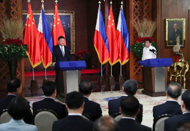 11月20日,國(guó)家主席習(xí)近平在馬尼拉同菲律賓總統(tǒng)杜特爾特舉行會(huì)談。這是會(huì)談后,兩國(guó)元首共同會(huì)見記者。(新華社記者 謝環(huán)馳 攝)
