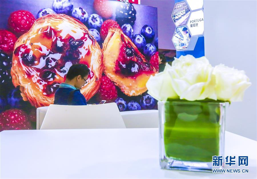 2018年11月6日,在中國(guó)上海,一位男士坐在中國(guó)國(guó)際進(jìn)口博覽會(huì)的葡萄牙展區(qū)內(nèi)。新華社記者 殷剛 攝