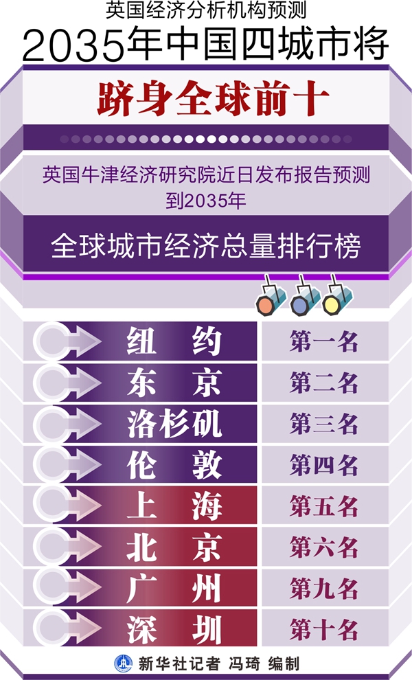 英國經(jīng)濟(jì)分析機(jī)構(gòu)預(yù)測2035年中國四城市將躋身全球前十 新華社記者 馮琦 編制