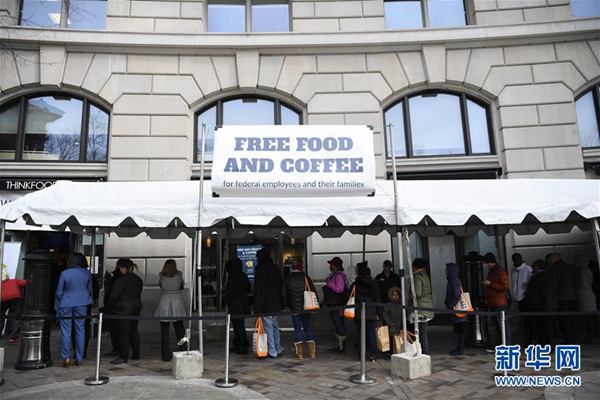 1月23日,在美國首都華盛頓,一些聯(lián)邦政府雇員在一家公益組織的“應(yīng)急食堂”外排隊領(lǐng)取免費餐。 新華社記者 劉杰 攝