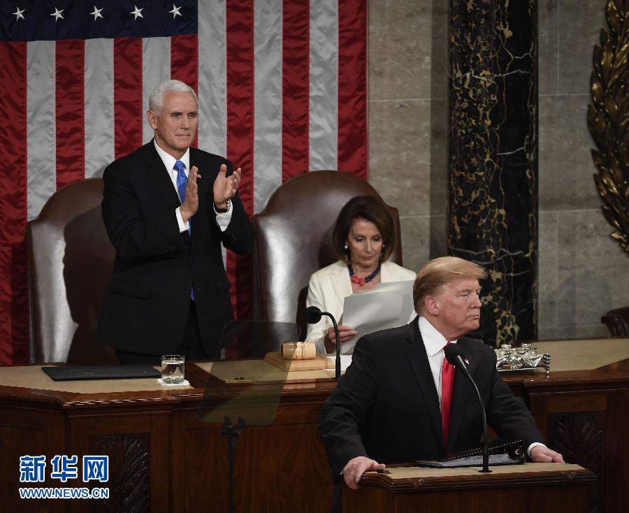 ??? 2月5日,在美國(guó)首都華盛頓,美國(guó)總統(tǒng)特朗普(前)在國(guó)會(huì)發(fā)表國(guó)情咨文演講。 新華社記者劉杰攝