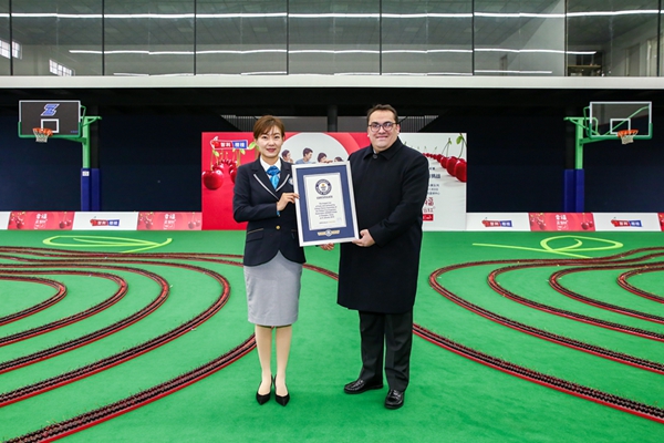 2019年1月9日,來自智利的24638個深紅色大櫻桃,漂洋過海來到中國上海,通過排列,組成了兩顆手牽手櫻桃的巨大圖案,創(chuàng)造了“最長的水果隊列”吉尼斯世界紀錄稱號。