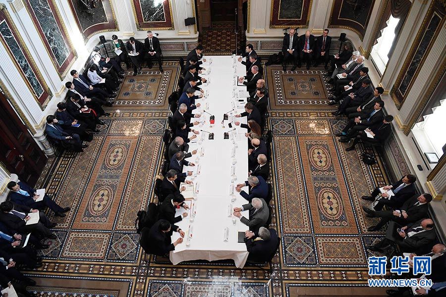 當(dāng)?shù)貢r間2月21日上午,習(xí)近平主席特使、中共中央政治局委員、國務(wù)院副總理、中美全面經(jīng)濟(jì)對話中方牽頭人劉鶴與美國貿(mào)易代表萊特希澤、財政部長姆努欽,在美國白宮艾森豪威爾行政辦公樓共同主持第七輪中美經(jīng)貿(mào)高級別磋商開幕式。 新華社記者 劉杰 攝
