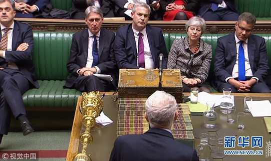 3月29日,在英國倫敦,英國首相特雷莎·梅出席議會(huì)下院辯論。英國議會(huì)下院29日投票否決了“脫歐”協(xié)議關(guān)鍵部分,這進(jìn)一步增加了英國“脫歐”的不確定性。新華社發(fā)(英國議會(huì)攝影師馬克·達(dá)菲攝)