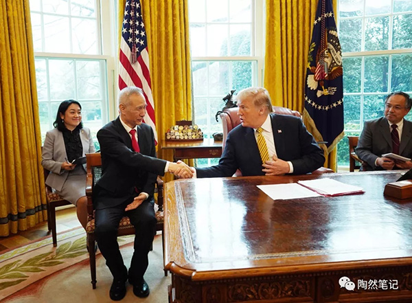 劉鶴副總理的位置,從特朗普的對(duì)面,安排到了特朗普的右側(cè)。