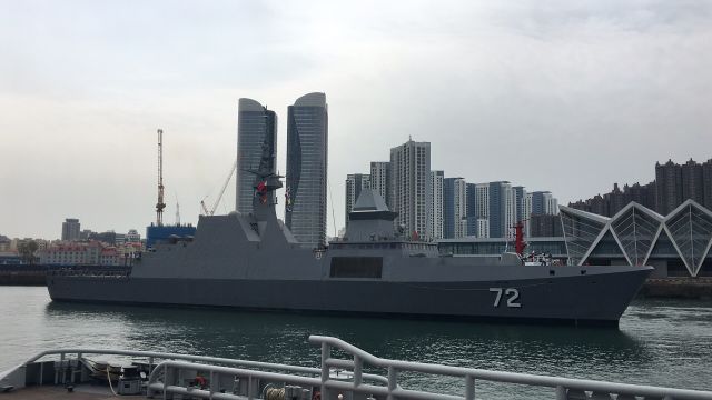 參加海軍成立70周年多國海軍活動的首艘外國艦艇抵達(dá)青島