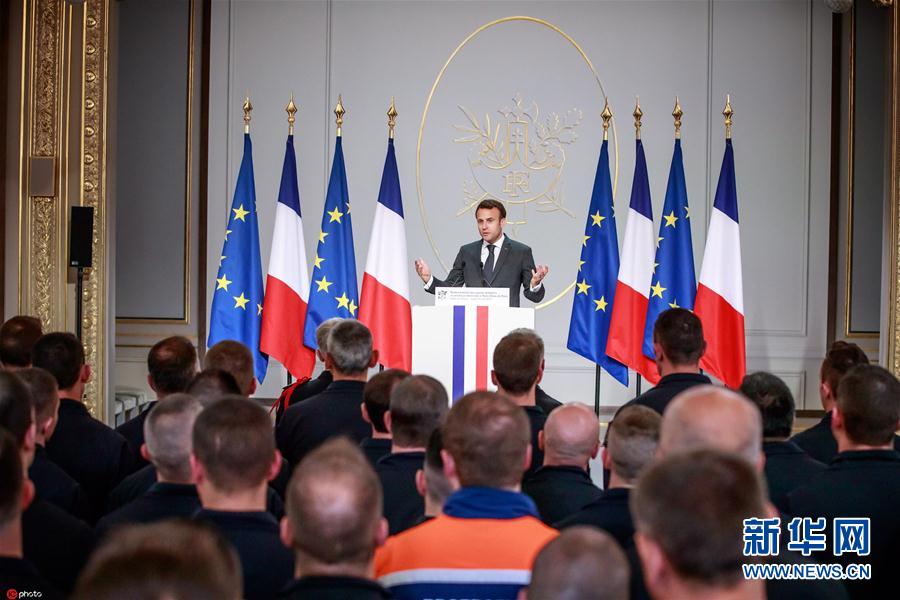 馬克龍接見參與巴黎圣母院救火任務(wù)消防員