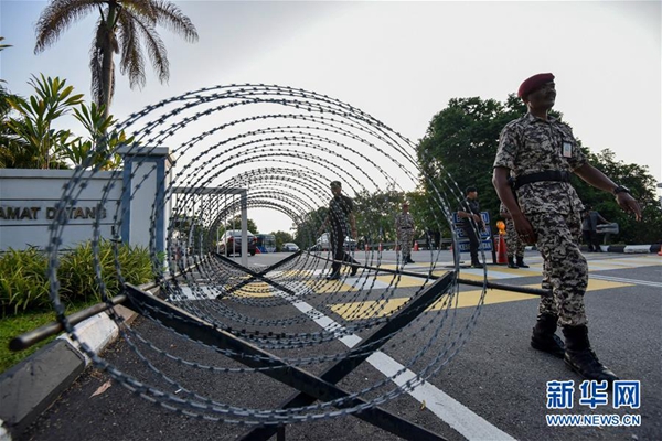 5月3日,在馬來(lái)西亞雪蘭莪州的加影,安保人員在監(jiān)獄外警戒。新華社發(fā)(張紋綜 攝)