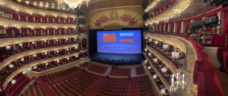 中俄建交70周年紀(jì)念大會(huì)開始前的莫斯科大劇院。新華社記者鄭曉奕攝