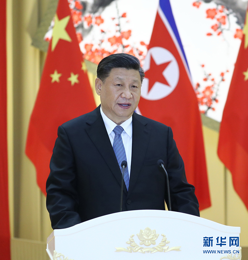 習(xí)近平在致辭中指出,回顧70年中朝關(guān)系史,雙方老一輩領(lǐng)導(dǎo)人親手締造了中朝傳統(tǒng)友誼,為我們留下了共同寶貴財(cái)富。盡管滄海桑田、風(fēng)云變幻,中朝友誼歷久彌堅(jiān)。剛才,我同金正恩委員長進(jìn)行了富有成果的會(huì)談,共同擘畫中朝關(guān)系美好未來,達(dá)成一系列重要共識(shí)。我們一致認(rèn)為,中朝雙方要堅(jiān)定不移傳承弘揚(yáng)傳統(tǒng)友誼,續(xù)寫時(shí)代新篇章。我們一致認(rèn)為,政治解決半島問題是人心所向、大勢(shì)所趨,要繼續(xù)高舉和平對(duì)話旗幟,為實(shí)現(xiàn)地區(qū)乃至世界和平、穩(wěn)定、繁榮作出新的更大貢獻(xiàn)。