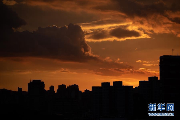 這是7月22日傍晚拍攝的委內(nèi)瑞拉首都加拉加斯停電的情況。新華社發(fā)(馬爾科斯·薩爾加多 攝)