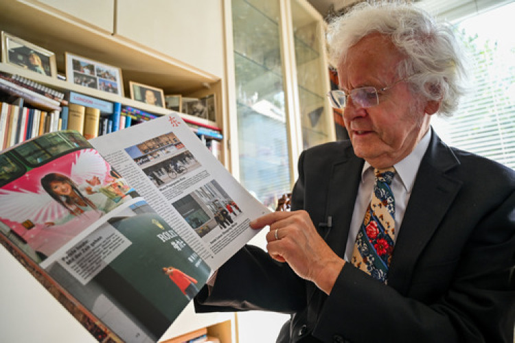 9月10日,德國(guó)漢堡,馬庭·庫(kù)摩在家中展示他在中國(guó)拍攝的照片。(新華社記者連振攝)