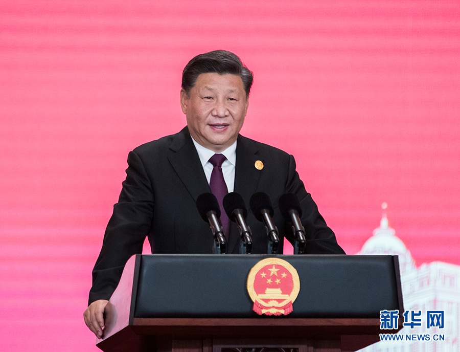 11月4日晚,國(guó)家主席習(xí)近平和夫人彭麗媛在上海和平飯店舉行宴會(huì),歡迎出席第二屆中國(guó)國(guó)際進(jìn)口博覽會(huì)的各國(guó)貴賓。這是習(xí)近平發(fā)表致辭。 新華社記者 王曄 攝