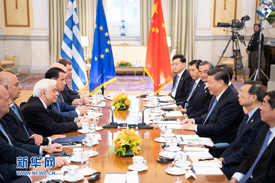 當(dāng)?shù)貢r間11月11日,國家主席習(xí)近平在雅典同希臘總統(tǒng)帕夫洛普洛斯會談。 新華社記者 姚大偉 攝