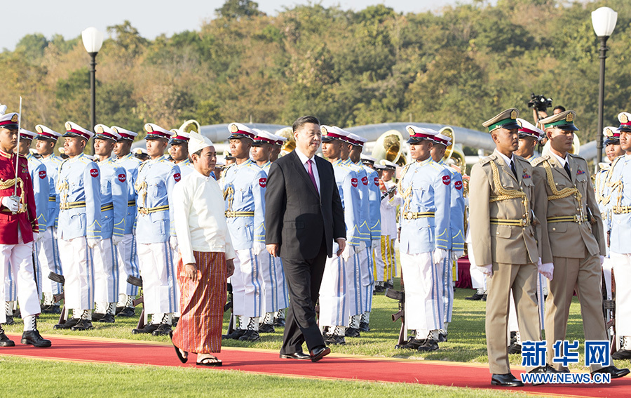 新華社內(nèi)比都1月17日電(記者蔣國鵬)當?shù)貢r間1月17日下午,國家主席習近平在內(nèi)比都總統(tǒng)府出席緬甸總統(tǒng)溫敏舉行的隆重歡迎儀式。