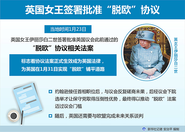 圖表:英國女王簽署批準“脫歐”協(xié)議 新華社記者 安治平 編制