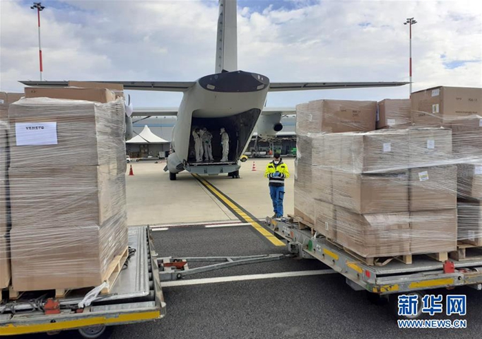 這是在意大利羅馬的菲烏米奇諾機(jī)場拍攝的從飛機(jī)上卸下的醫(yī)療物資(3月30日攝)。新華社發(fā)
