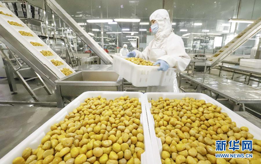 7月14日,工人在河北省遵化市一家外貿(mào)加工企業(yè)車間加工出口栗仁。當(dāng)日,海關(guān)總署發(fā)布數(shù)據(jù)顯示,今年6月份,我國貨物貿(mào)易出口、進(jìn)口首次迎來年內(nèi)雙雙同比正增長,回升態(tài)勢好于預(yù)期。從月度看,自4月份起我國出口連續(xù)3個(gè)月實(shí)現(xiàn)正增長,6月份進(jìn)出口同比增長5.1%。 新華社發(fā)(劉滿倉 攝)
