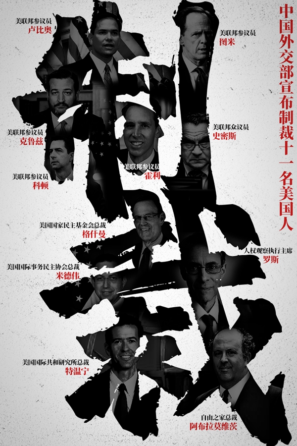 趙立堅(jiān)說(shuō),針對(duì)美方錯(cuò)誤行徑,中方?jīng)Q定即日起對(duì)在涉港問題上表現(xiàn)惡劣的美聯(lián)邦參議員盧比奧、克魯茲、霍利、科頓、圖米,聯(lián)邦眾議員史密斯,以及美國(guó)國(guó)家民主基金會(huì)總裁格什曼、美國(guó)國(guó)際事務(wù)民主協(xié)會(huì)總裁米德偉、美國(guó)國(guó)際共和研究所總裁特溫寧、“人權(quán)觀察”執(zhí)行主席羅斯、“自由之家”總裁阿布拉莫維茨實(shí)施制裁。