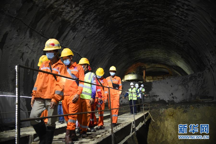 11月15日,施工人員走在印度尼西亞西爪哇省的雅萬高鐵7號隧道內(nèi)。新華社發(fā)(祖卡南 攝)