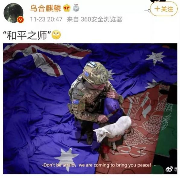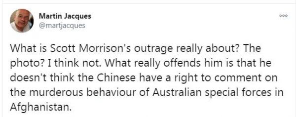 “莫里森的憤怒到底是什么?‘照片’?我想不是。真正令他惱怒的是,他認為中國人無權對澳大利亞特種部隊在阿富汗的謀殺行為發(fā)表評論?!?/font>