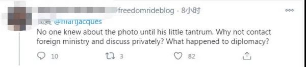 “在他發(fā)脾氣之前沒人知道這張‘照片’。為什么不聯系外交部私下討論?外交怎么了?”