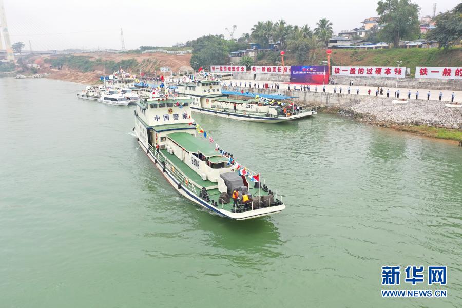 這是第100次中老緬泰湄公河聯(lián)合巡邏執(zhí)法勤務(wù)啟航儀式現(xiàn)場(chǎng)(12月8日攝)。新華社發(fā)(云南省公安廳水上巡邏總隊(duì)提供)