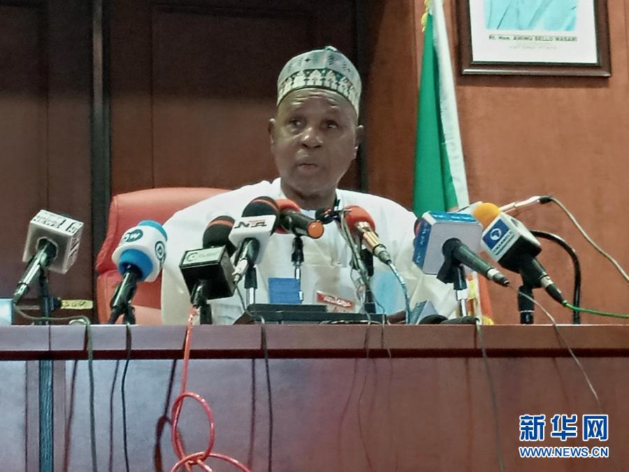 12月18日,在尼日利亞卡齊納州卡齊納市,卡齊納州州長阿米努·馬薩里出席獲釋學生的迎接儀式時講話(手機照片)。新華社發(fā)(奧瓦勒·易卜拉欣攝)