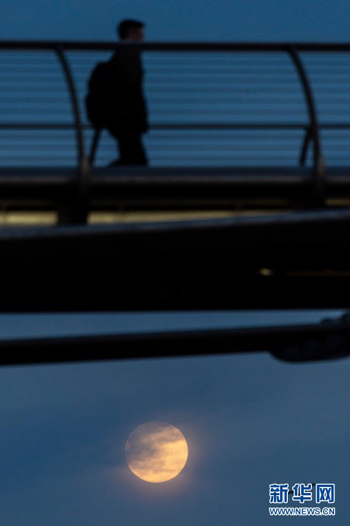 這是4月26日在英國(guó)倫敦拍攝的千禧橋附近的“超級(jí)月亮”。