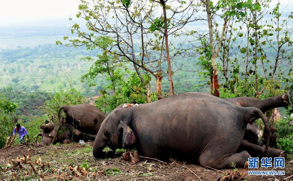 這是5月14日在印度阿薩姆邦納加奧恩地區(qū)拍攝的死去的象。