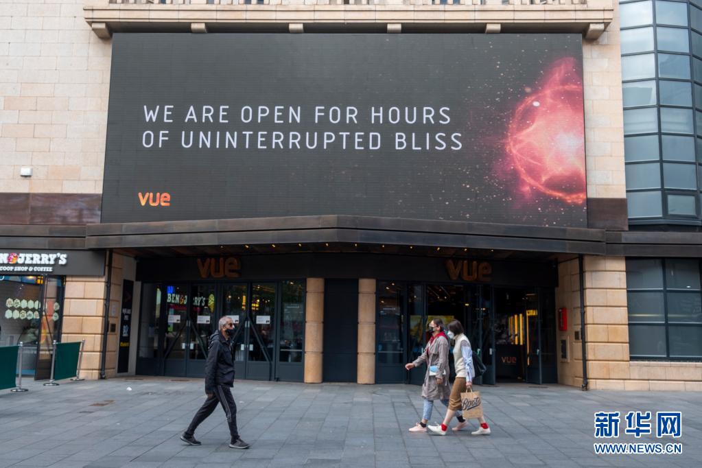 5月17日,人們從英國倫敦一家重開的電影院門前走過。