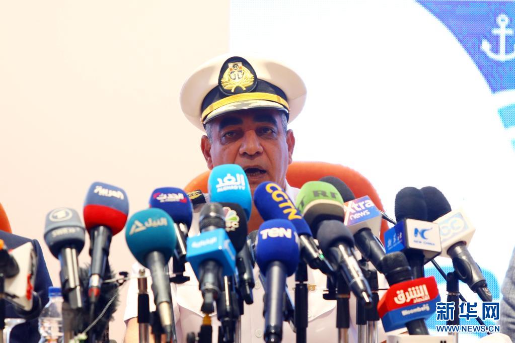 5月30日,在埃及東北部城市伊斯梅利亞,蘇伊士運(yùn)河管理局調(diào)查組負(fù)責(zé)人賽義德·舒愛沙在“長賜”號貨輪擱淺事故調(diào)查結(jié)果新聞發(fā)布會上講話。