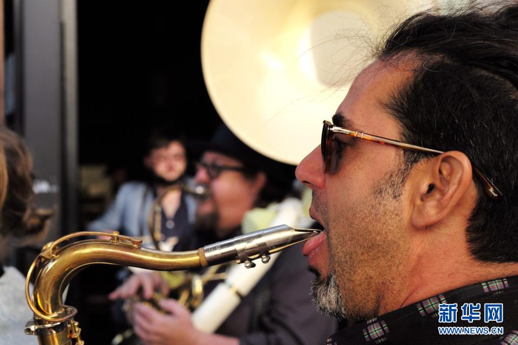 6月15日,樂隊(duì)成員在美國加利福尼亞州舊金山一家酒吧外演奏。