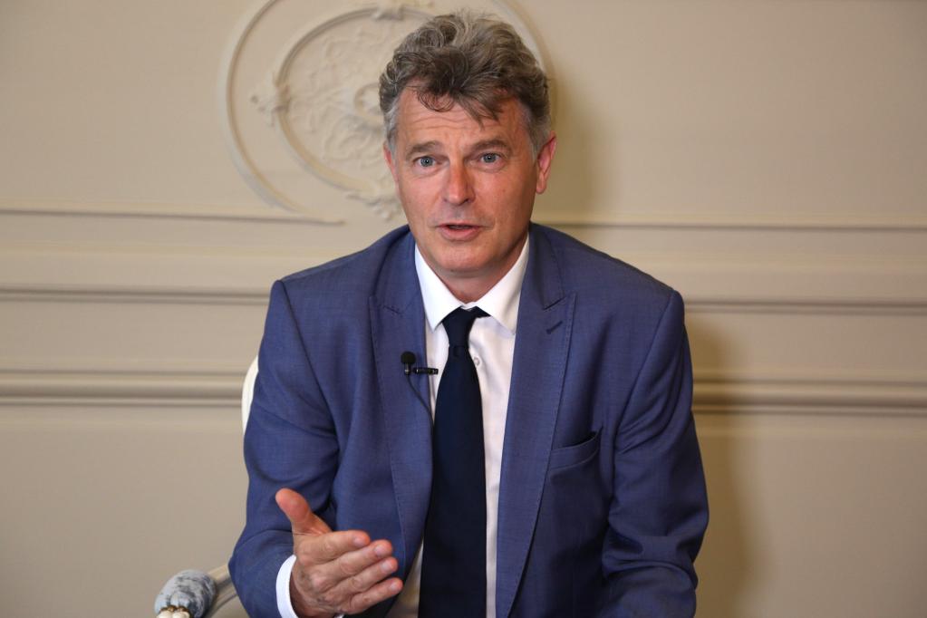 6月10日,法國(guó)共產(chǎn)黨全國(guó)書(shū)記法比安·魯塞爾在巴黎接受新華社記者采訪。新華社記者 唐霽 攝