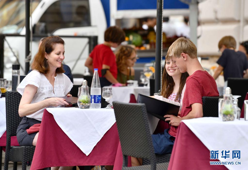 6月24日,人們?cè)谝獯罄_馬一家餐館的戶外區(qū)域消費(fèi)。