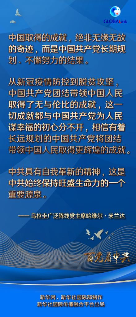 米蘭達(dá)說(shuō),從新冠疫情防控到脫貧攻堅(jiān),中國(guó)共產(chǎn)黨團(tuán)結(jié)帶領(lǐng)中國(guó)人民取得了無(wú)與倫比的成就,這一切成就都與中國(guó)共產(chǎn)黨為人民謀幸福的初心分不開(kāi),相信有著長(zhǎng)遠(yuǎn)規(guī)劃的中國(guó)共產(chǎn)黨將團(tuán)結(jié)帶領(lǐng)中國(guó)人民取得更輝煌的成就。