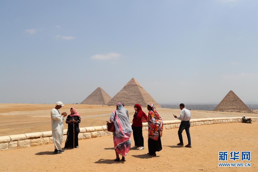 4月26日,游客在位于埃及吉薩省的金字塔群景區(qū)內游玩。